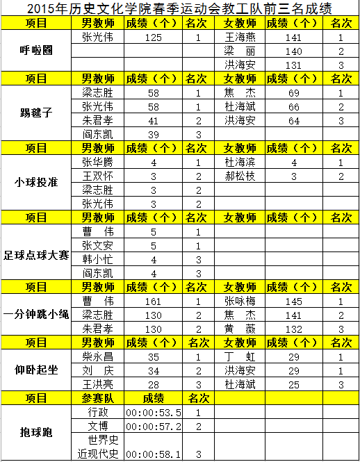 2015年9778818威尼斯春季运动会教工队前三名成绩