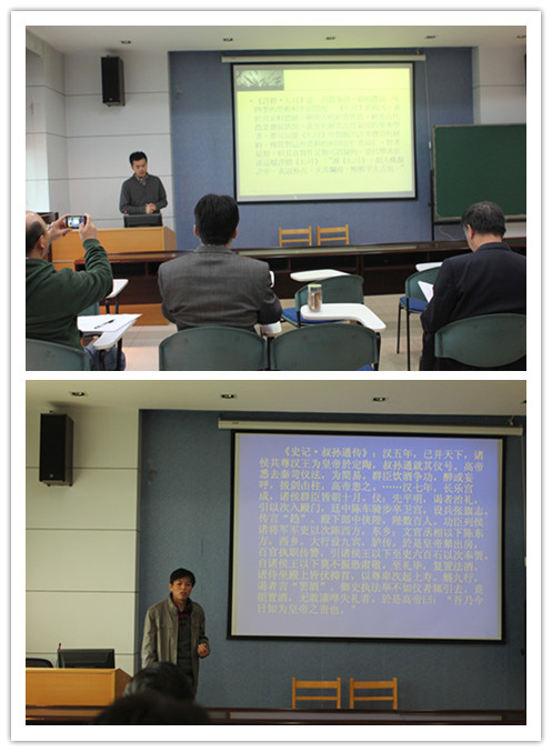 此次大赛评委组由学院教师王玉华、李亚平、王大伟、梁志胜、吕亚虎五人组成,学院书记丁虹老师莅临指导,吕亚虎副院长主持本次比赛,有6名青年教师参加了本次比赛。各位参赛老师赛前充分的准备和查赛中的精彩展示,表现出他们良好的教学基本功和认真严谨的教学态度。其中,骆扬老师以熟练地讲课技巧与成熟的台风将大家带入《诗经·七月》的课堂环境中;权家玉老师详细地讲解了《魏晋玄学与社会审美》;邓锐老师以其特有的讲课方式和独到的观点为大家讲述了如何《借鉴一切有价值的理论和方法》;张光伟老师为大家介绍了《MOOC课程——一种新的网络课程模式》,让人耳目一新;刘庆老师的《西汉前期的政治与社会》带领大家进入西汉前期的历史之中。最后,侯亚伟老师以其吸引学生注意力的《鸦片战争前的中国与西方——从马戛尔尼使团访华谈起》为本次比赛讲课阶段画上了圆满的句号。